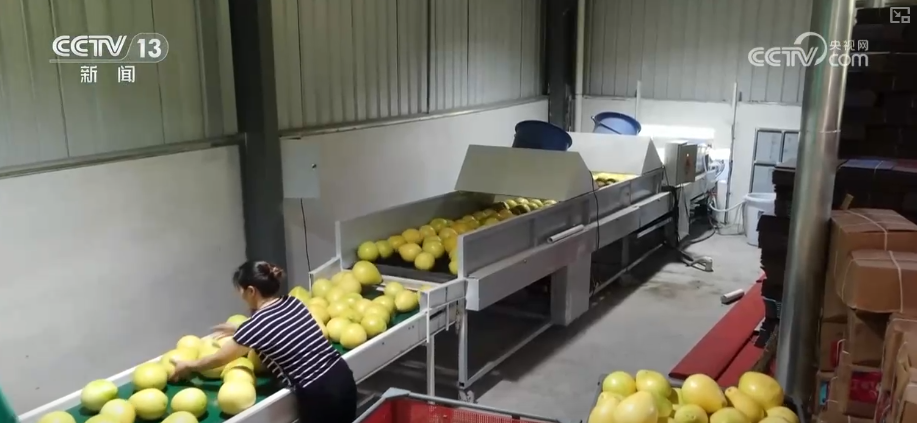 柚子加工企业也马力全开。农机手驾驶玉米收割机忙碌功课,